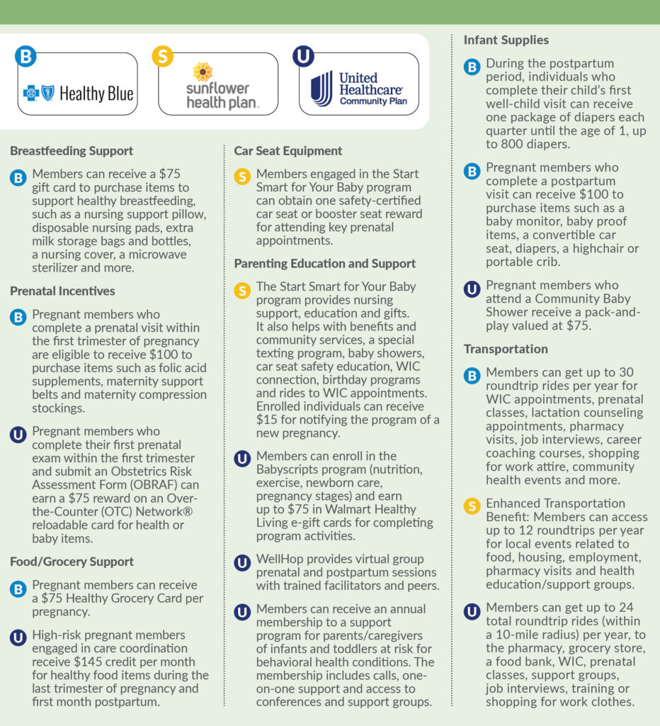 - MCOs may also offer value-added benefits, including grocery and breastfeeding support, transportation and parenting programs, that go beyond required services to help meet the social and practical needs of families.
