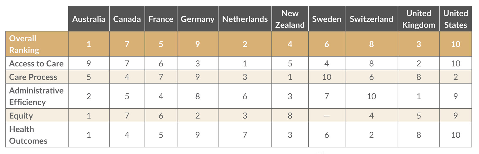 Figure 2. Ranking Five Key Domains of Health Care System Performance, by Country, 2024